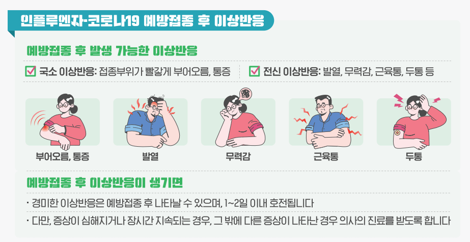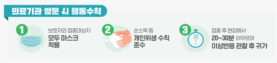 📌 접종 후 2~3일간은 고열 등 평소와 다른 신체 증상이 나타나면 반드시 의사의 진료를 받도록 합니다.