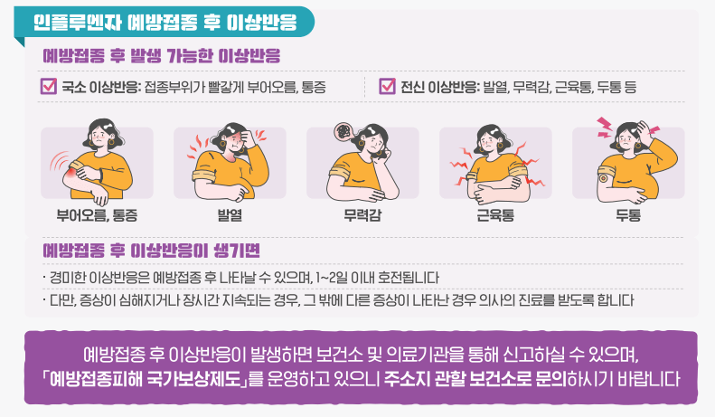 독감 백신 예방접종 후 발생 가능한 이상반응