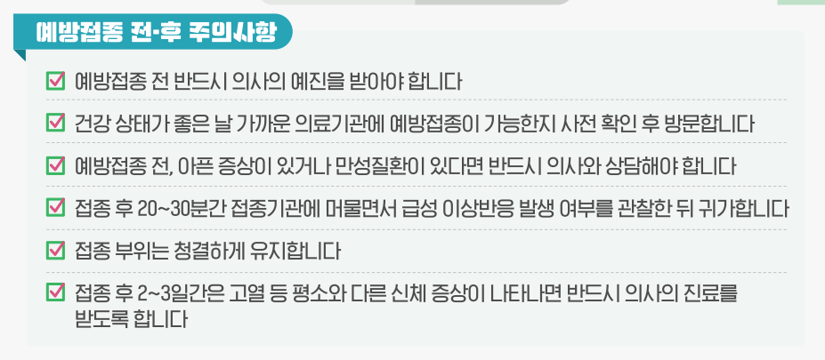 📌 예방접종 전, 아픈 증상이 있거나 만성질환이 있다면 반드시 의사와 상담해야 합니다.